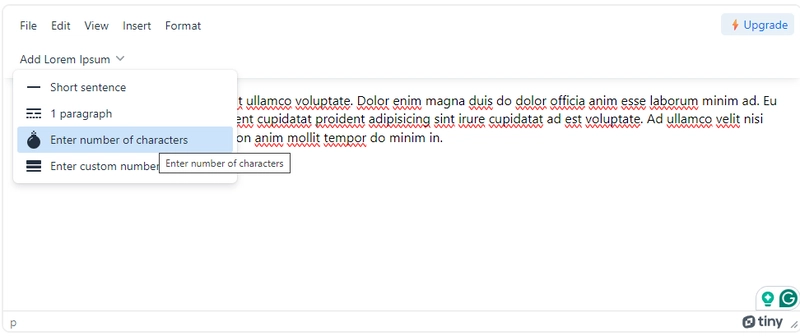 editor.insertContent(loremIpsum({ count, units: 'sentences' }));